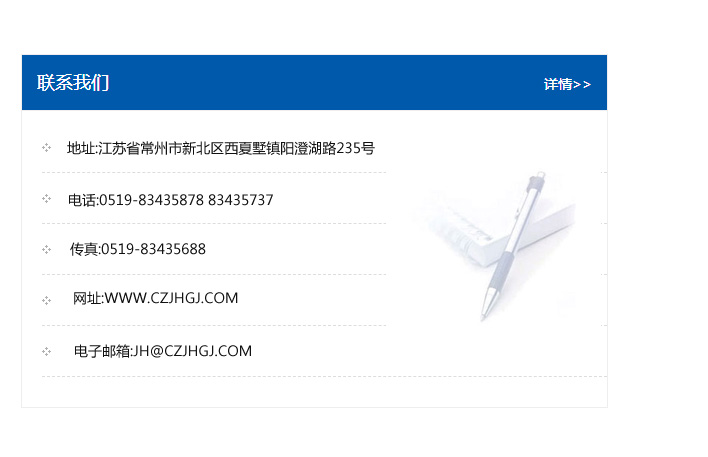 傳真:0519-83435688    郵編:213135    網址:WWW.czjhgj_com.laileyou.com    電子郵箱:JH@czjhgj_com.laileyou.com